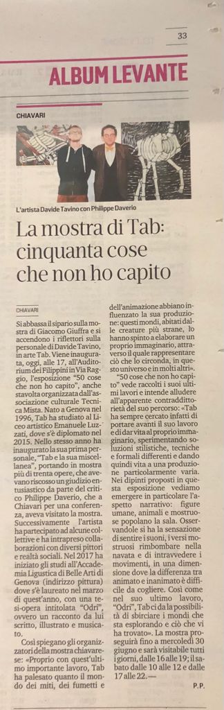D. TavinoTab: articolo sul Secolo XIX 20 giugno 202121 giugno 2021 arera Articolo uscito sul Secolo il giorno dell’inaugurazione. Belle parole. Grazie. https://tecnicamistachiavari.com/wp-content/uploads/2021/06/wp-1624262144405.jpg?resize=892%2C892 Condividi: Fai clic per condividere su X (Si apre in una nuova finestra) X Fai clic per condividere su Facebook (Si apre in una nuova finestra) Facebook Mi piace Caricamento...