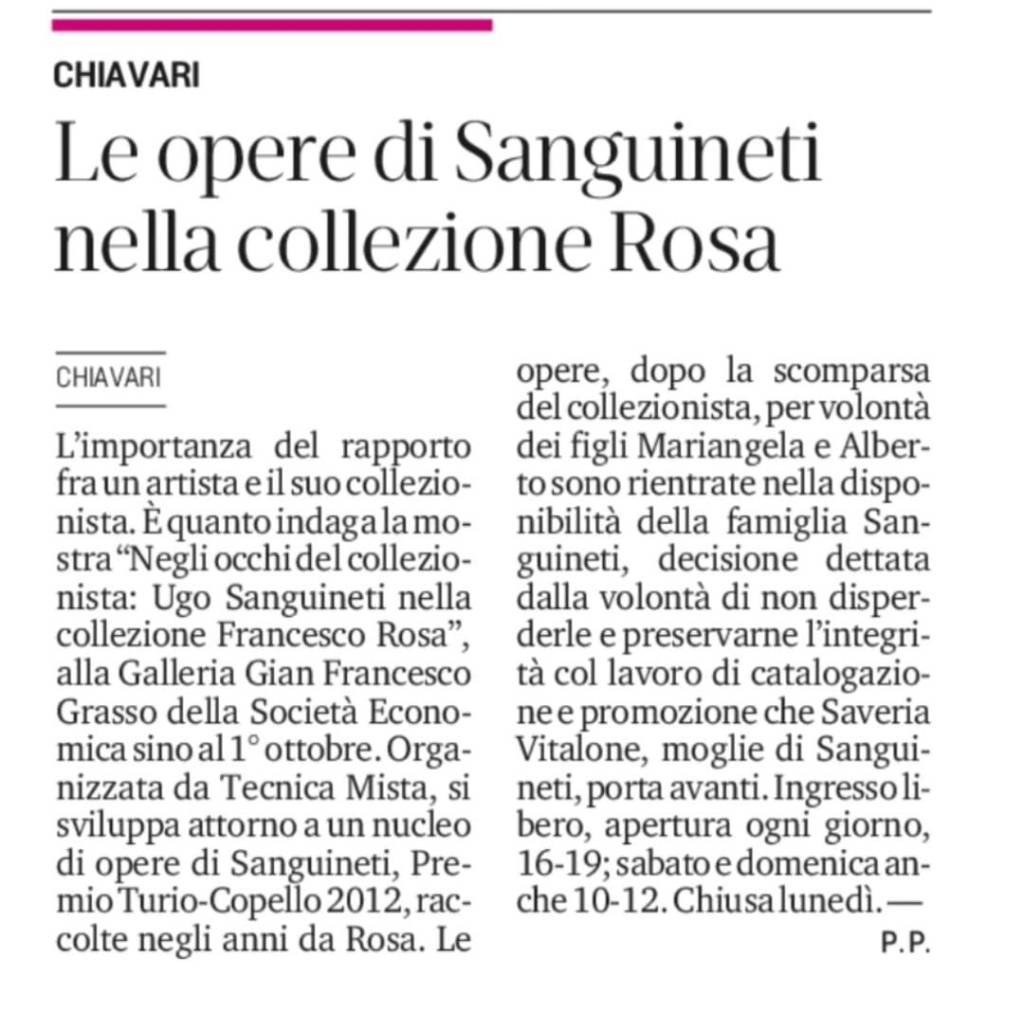 Ecco l’articolo pubblicato dal Secolo sulla mostra Negli Occhi del Collezionista: Ugo Sanguineti nella collezione di Francesco Rosa.
